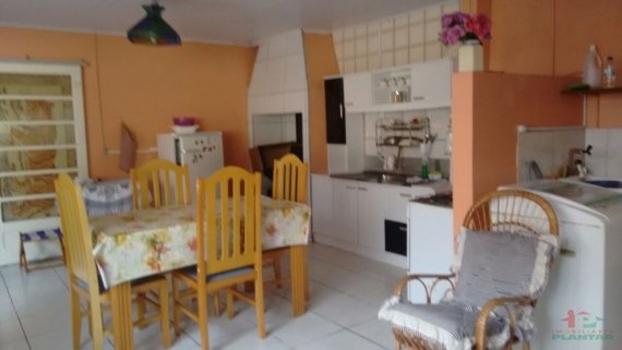 Casa de alvenaria com 2 pavimentos, sendo que a parte de cima é um apartamento com 2 quartos, 1 banheiro, sala de estar e jantar, cozinha e lavanderia.