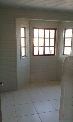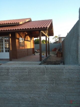 Casa de Madeira eucalipto, contendo 2 quartos, sala e cozinha conjugada, 1 banheiro, 1 vaga de garagem.