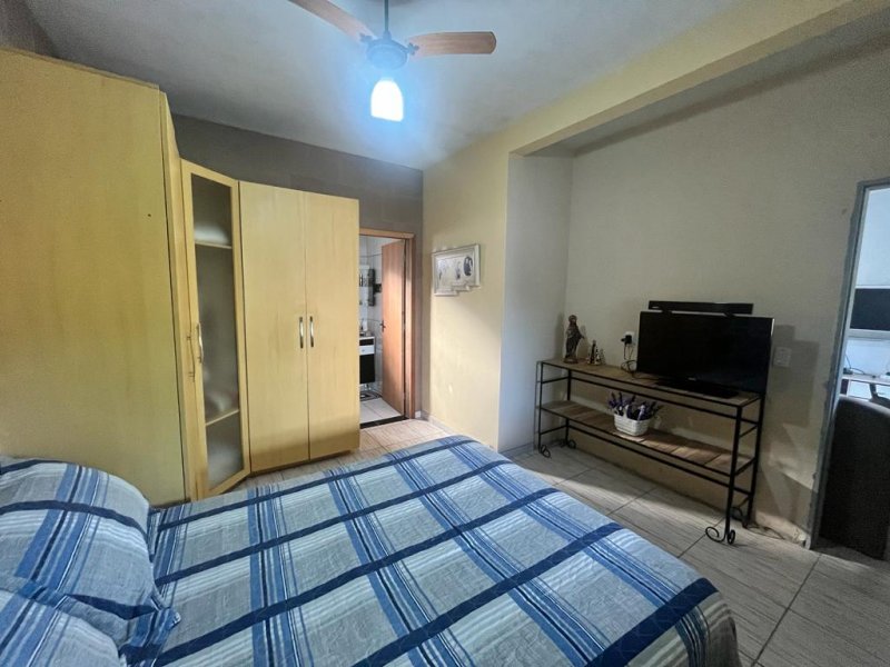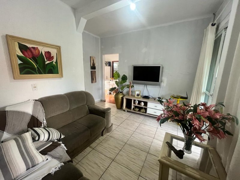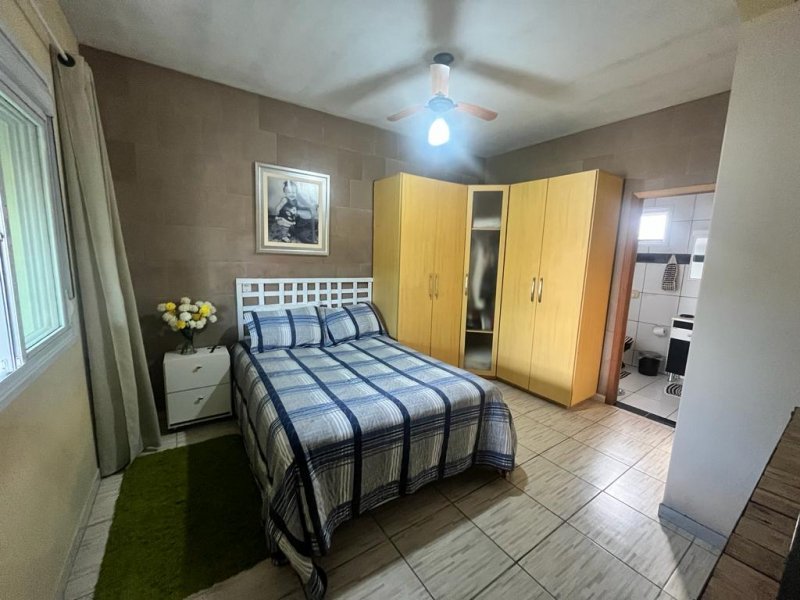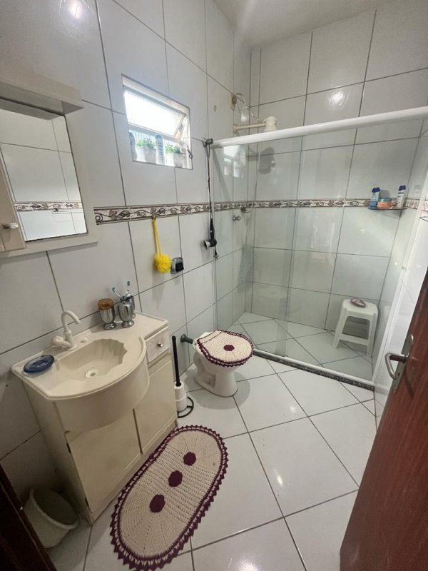 Casa de alvenaria contendo 2 quartos, sendo 1 suíte, sala de estar, cozinha, área de serviço, banheiro social e 1 vaga de garagem.