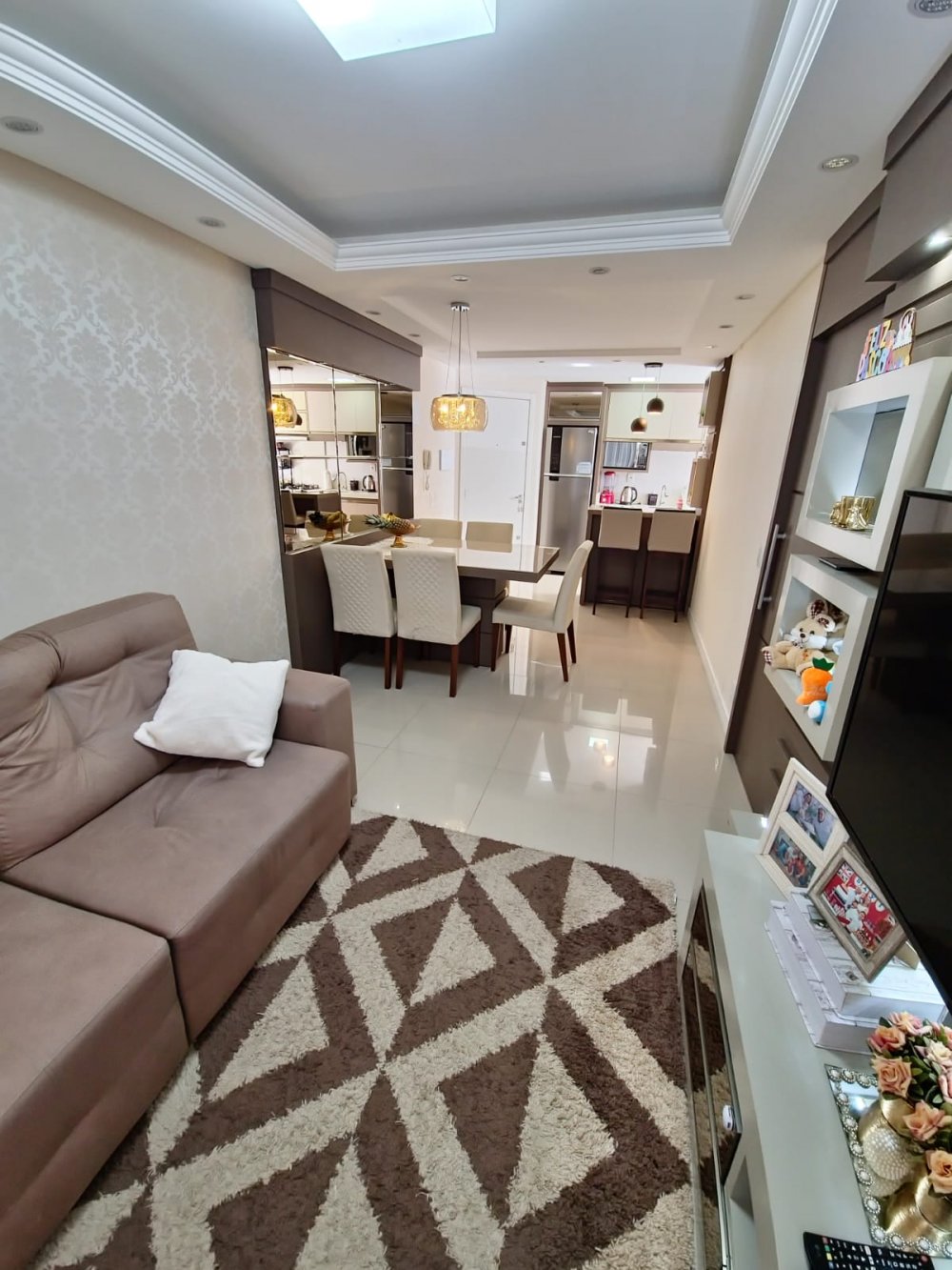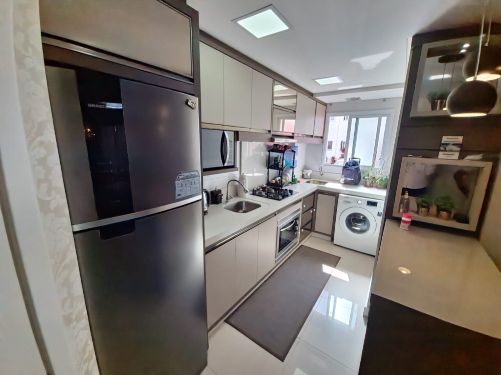 Ótimo apartamento, em condomínio fechado, contendo 2 quartos, 1 banheiro, sala de estar e jantar, cozinha, área de serviço, sacada com churrasqueira e 1 vaga de garagem.