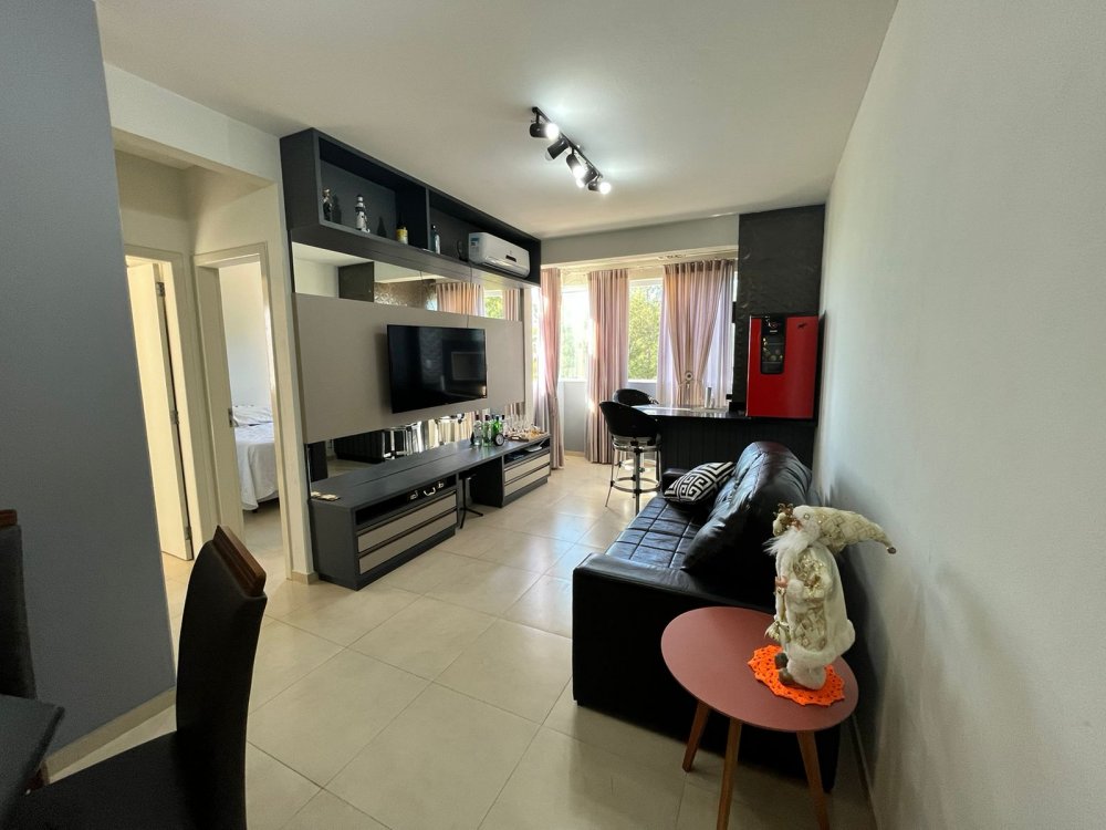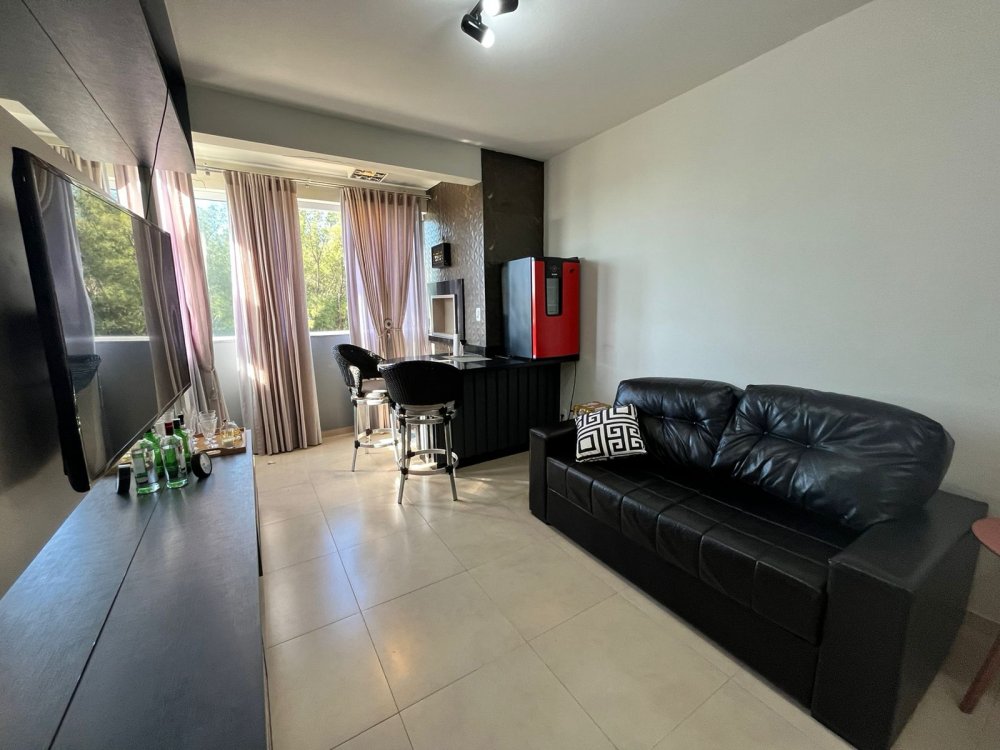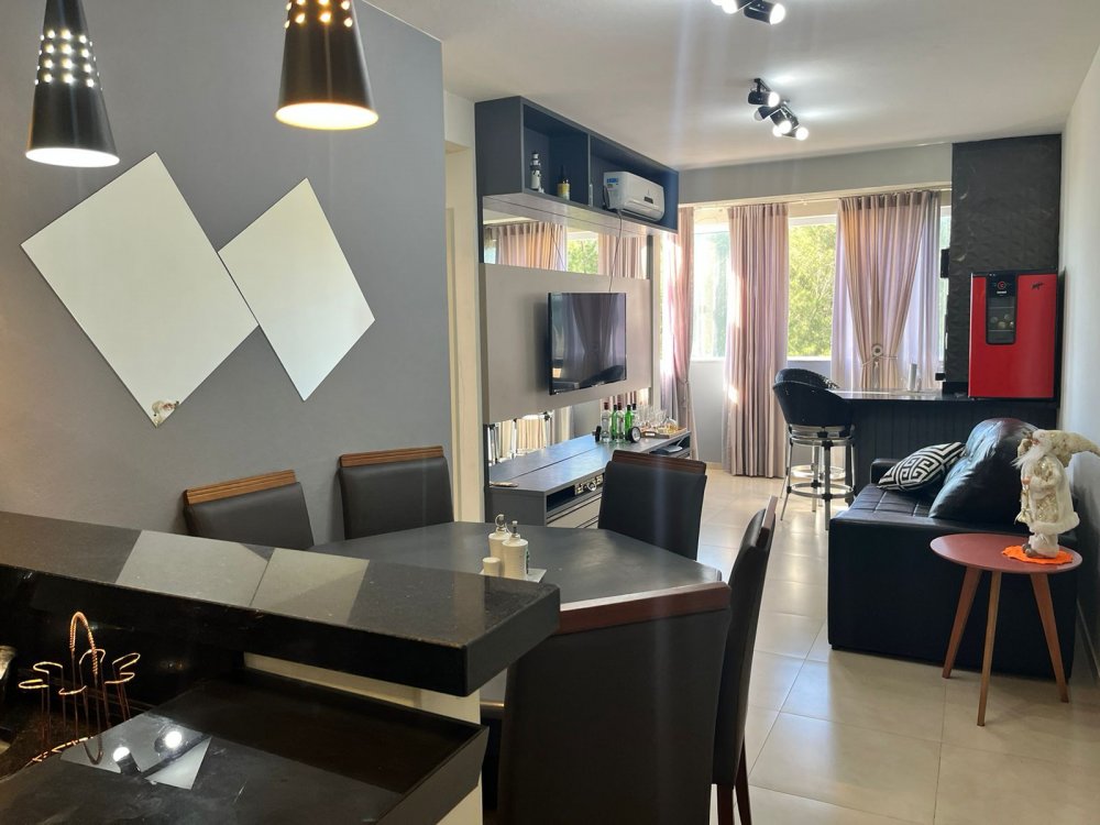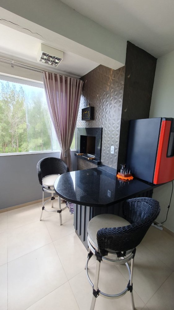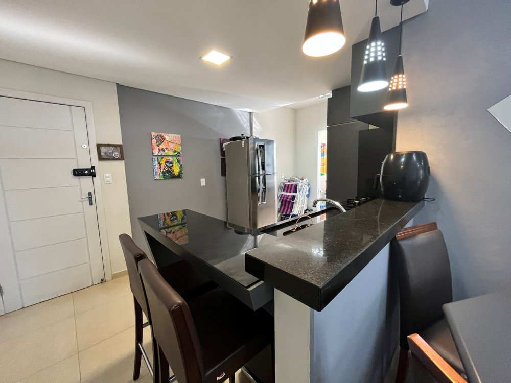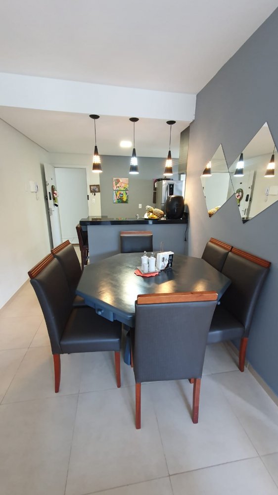 Apartamento no Res. Molhes da Barra, a poucos metros da praia do Mar Grosso e do bote que liga à Ponta da Barra. Constituído por:
