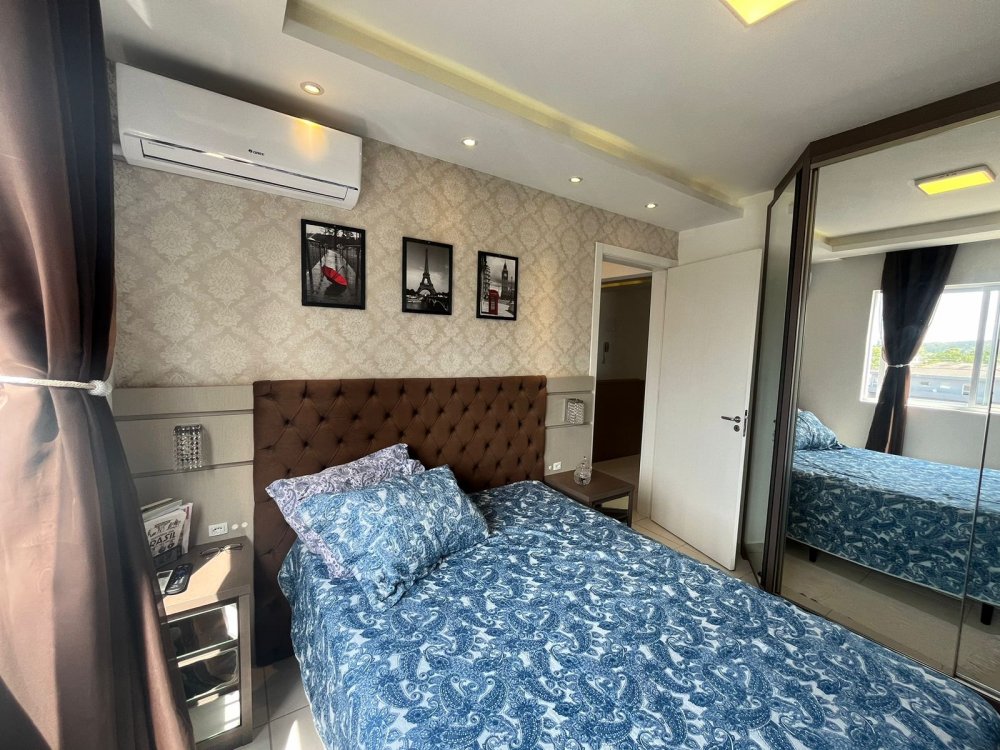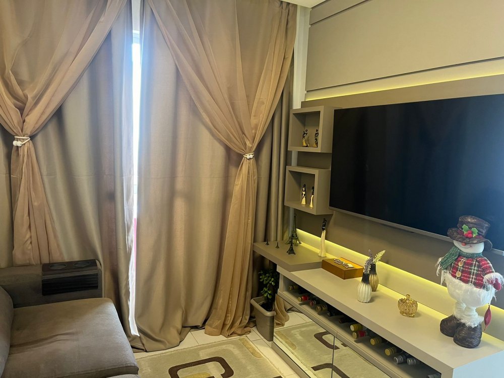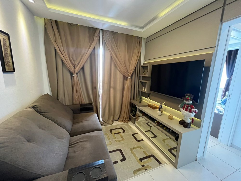 Ótimo apartamento, em condomínio fechado, contendo 2 quartos, 1 banheiro, sala de estar e jantar, cozinha, área de serviço, sacada com churrasqueira e 1 vaga de garagem.