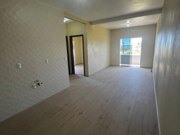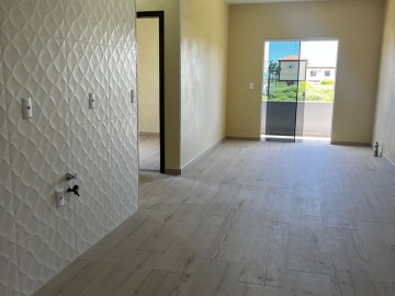 Apartamento contendo 2 Quartos, Banheiro social, Sala e Cozinha conjugada e uma vaga de garagem.