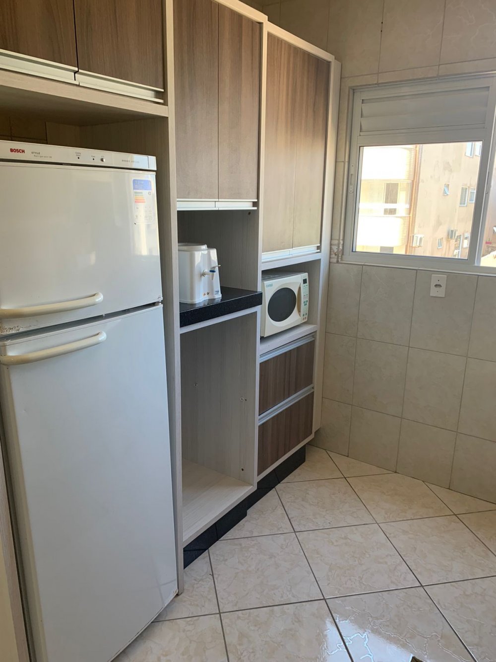 3 quartos, sendo 1 suíte, sala de estar e jantar, cozinha, área de serviço, sacada fechada com churrasqueira e 1 vaga de garagem.