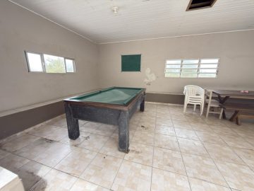 Prédio com amplo salão de festas com churrasqueira e mesa de sinuca