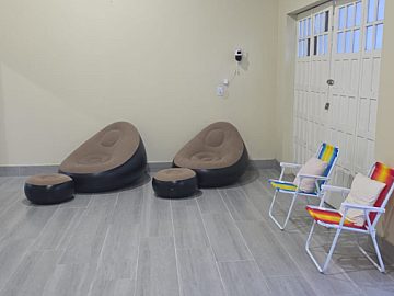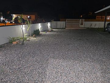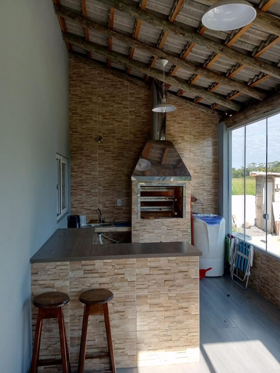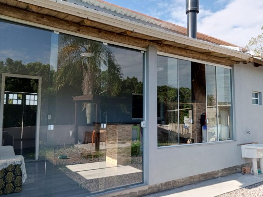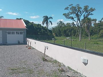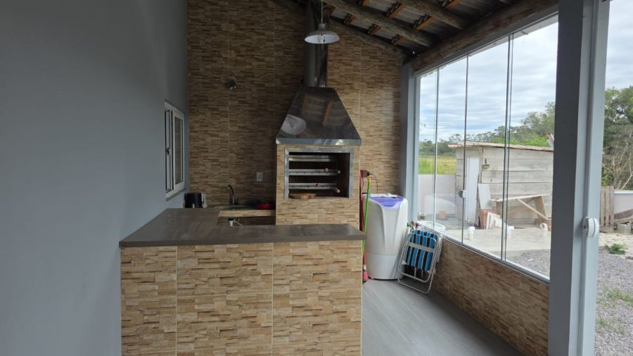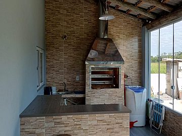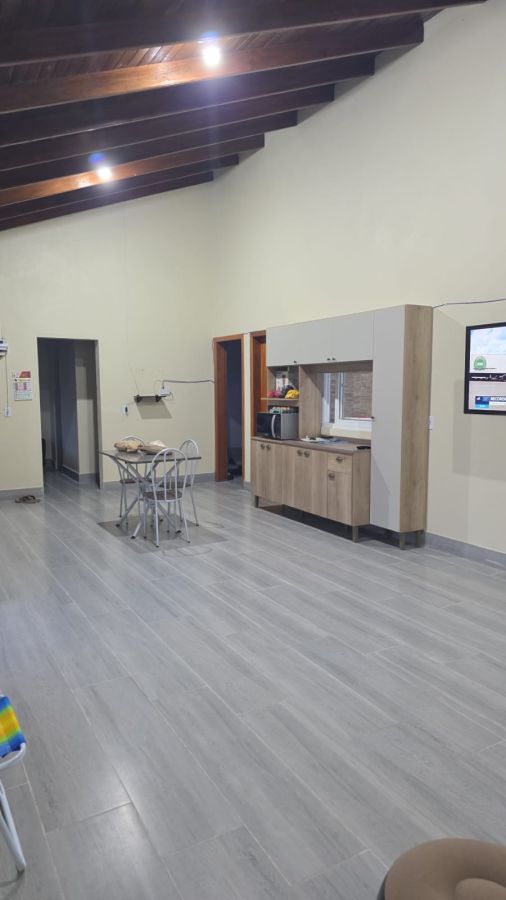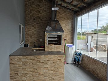 2 quartos(1 suíte), banheiro, sala ampla, cozinha e área gourmet, terreno frente e fundos com pergolados, toda mobiliada (móveis novos)