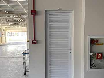 Prédio imponente com 2 torres, cada uma equipada com 2 elevadores.