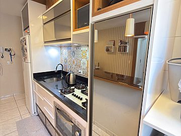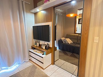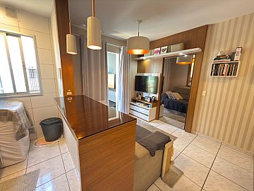 O apartamento possui uma planta funcional e bem distribuída, composta por dois dormitórios, sala de estar, banheiro social e área de serviço. Um dos grandes diferenciais desta unidade é a sacada equipada com churrasqueira, um item de alta demanda que agrega valor imediato ao patrimônio. O imóvel é comercializado na condição de semimobiliado, o que reduz o investimento inicial necessário para ocupação ou locação.