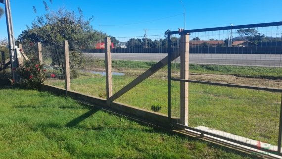 Terreno cercado, frente para BR 101, fundos para a ferrovia Tereza Cristina (que também é rua).